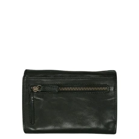 Compact formaat portemonnee met overslag en drukknoopsluiting. Deze portemonnee heeft 5 kaarthouders, 2 steekvakjes en een intern ritsvak voor kleingeld. Met als extra nog een klein ritsvakje achterop.