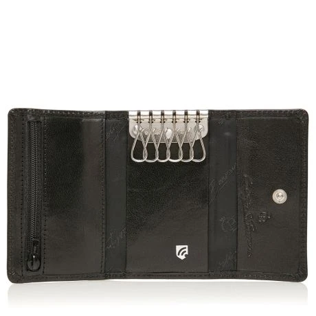 Sleuteletui uit de Gaucho serie van Castelijn & Beerens. Zeer compacte sleuteletui met 6 kleine haakjes om sleutels overzichtelijk in weg te bergen. Bevat bovendien een klein maar handig extra ritsvakje. De portemonnee is voorzien van een high-tech folie, dat het uitlezen van de persoonlijke gegevens via de RFID-chip op uw pasjes volledig blokkeert. De Gaucho-serie van Castelijn & Beerens is gemaakt van stierenleer en behandeld met een transparante verfstof. Afgewerkt met het sierlijke C&B-logo in een leren ovaaltje.