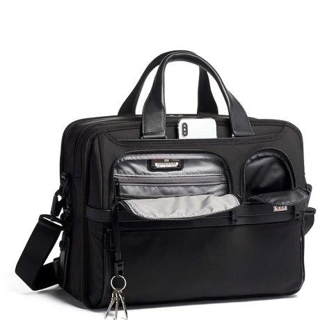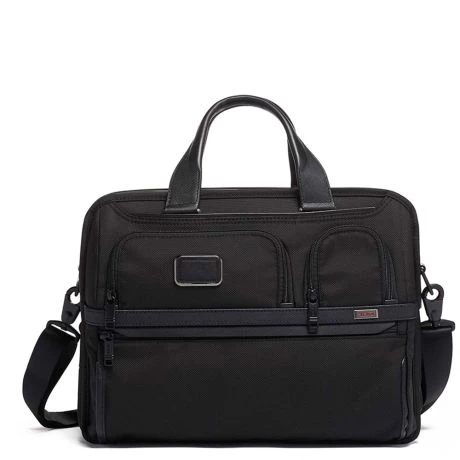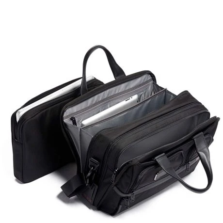Schoudertas uit de Alpha serie van Tumi. Zakelijke organizer zeer geschikt voor het dagelijkse woon-werkverkeer en regelmatig reizen. Ruim ingedeelde organizer met 2 hoofdcompartimenten waarvan een met uitneembaar 15″ gevoerd laptopvak. Volledig georganiseerd interieur met oa gevoerd tablet, geschikt voor A4 materiaal en extra ruimte voor dagelijkse spullen. Met rits uit te breiden voor nog meer opberg ruimte. Ritsvak achterop die tevens voldoet als smart-sleeve om de tas een trolley te bevestigen. Met twee handgrepen en afneembare schouderriem gemakkelijk mee te nemen. Doordat de tas gemaakt is van FXT Ballistic Nylon is de tas gigantisch sterk.